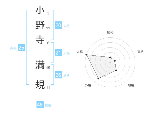 小野寺 満規さんの総格は46画の1点!