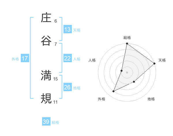 庄谷 満規さんを姓名の画数から五運を鑑定