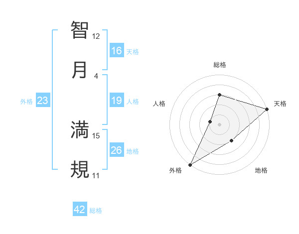 智月 満規さんの天格は16画の5点!