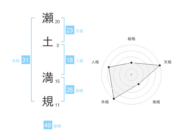 瀬土 満規さんの外格は31画の5点!