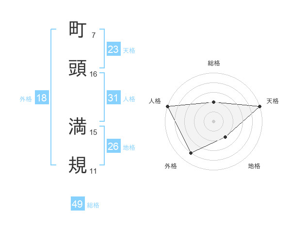 町頭 満規さんの天格は23画の5点!