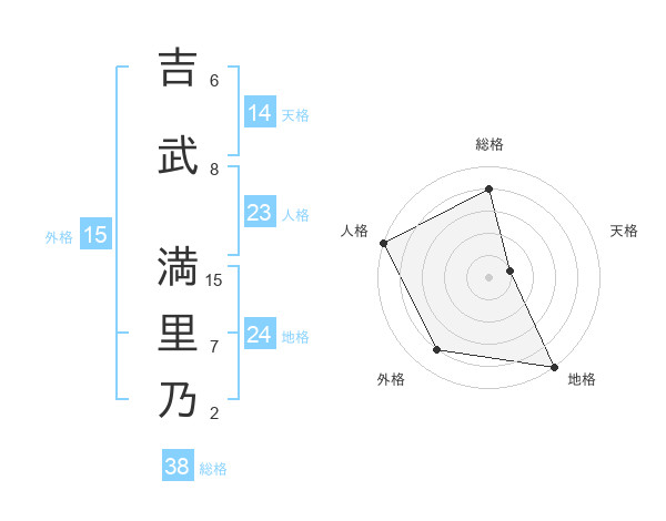 吉武 満里乃さんの総格は38画の4点!