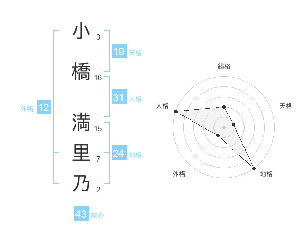 小橋 満里乃さんを姓名の画数から五運を鑑定