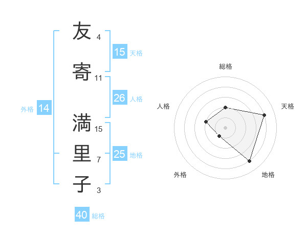 友寄 満里子さんを姓名の画数から五運を鑑定