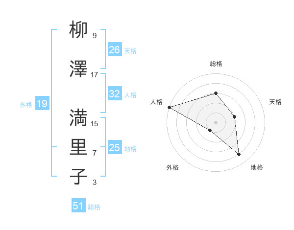 柳澤 満里子さんを姓名の画数から五運を鑑定