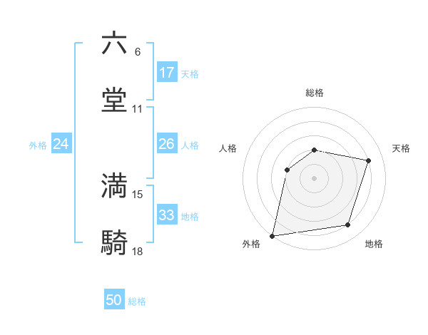 六堂 満騎さんを姓名の画数から五運を鑑定