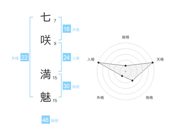 七咲 満魅さんを姓名の画数から五運を鑑定