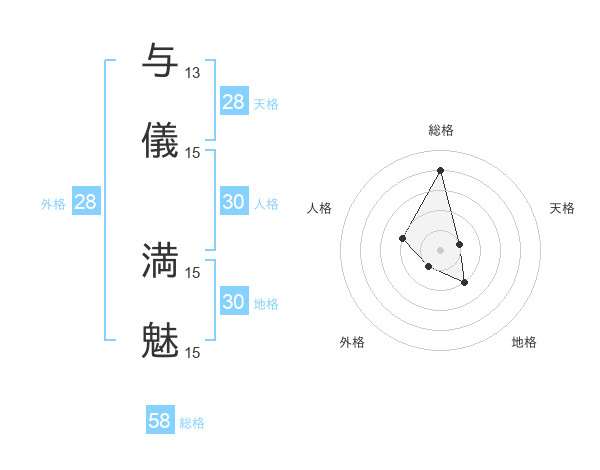 与儀 満魅さんの総格は58画の4点!