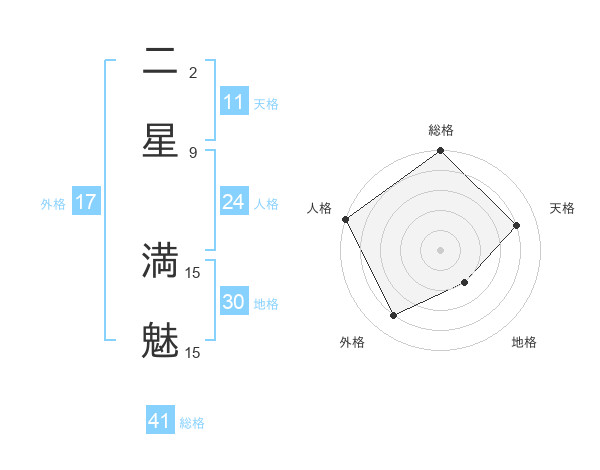 二星 満魅さんの外格は17画の4点!