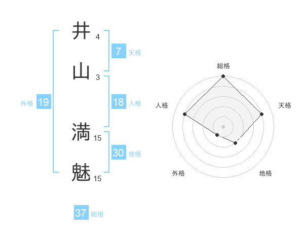 井山 満魅さんの総格は37画の5点!