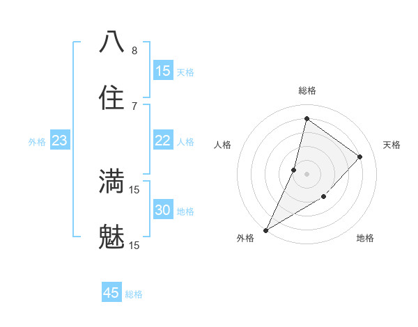 八住 満魅さんの総格は45画の4点!