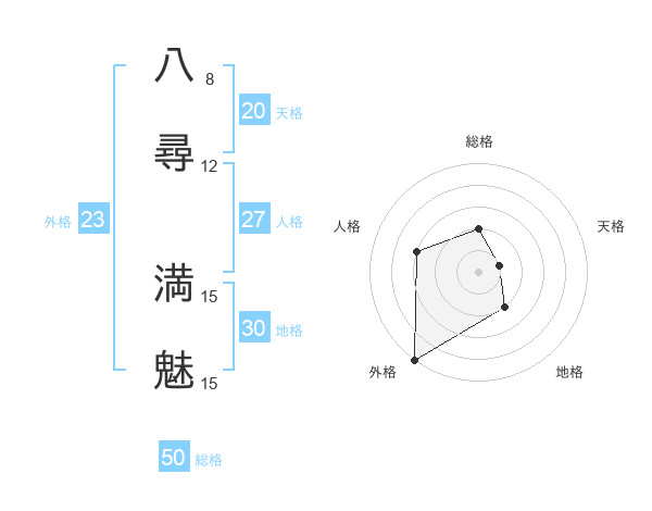 八尋 満魅さんを姓名の画数から五運を鑑定