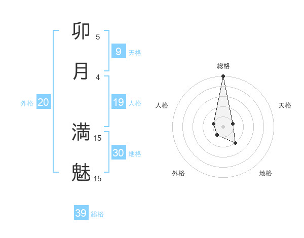 卯月 満魅さんの総格は39画の5点!