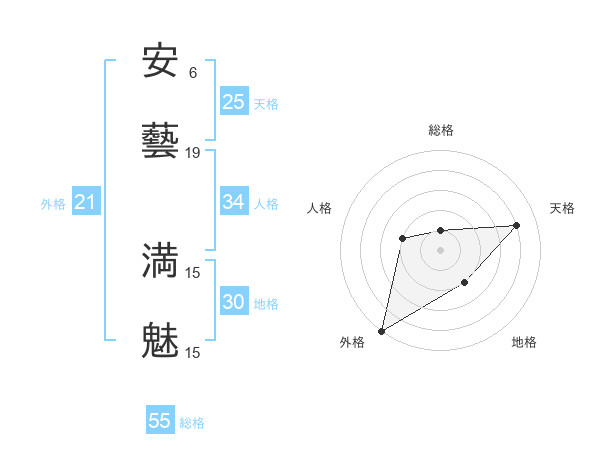 安藝 満魅さんを姓名の画数から五運を鑑定