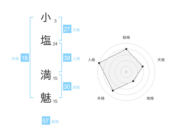 小塩 満魅さんを姓名の画数から五運を鑑定