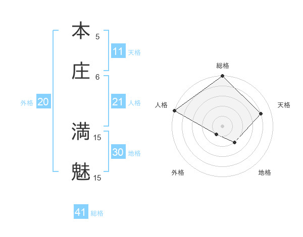 本庄 満魅さんの総格は41画の5点!