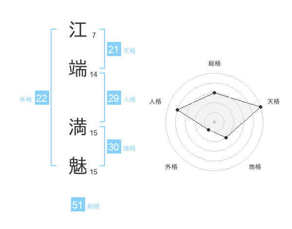 江端 満魅さんの総格は51画の3点!
