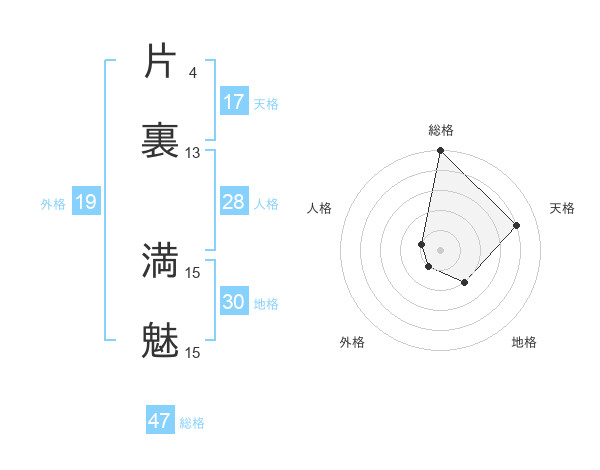 片裏 満魅さんの天格は17画の4点!