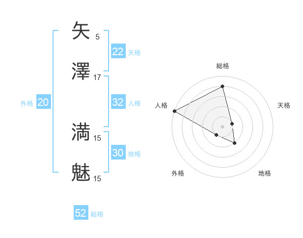 矢澤 満魅さんの天格は22画の1点!