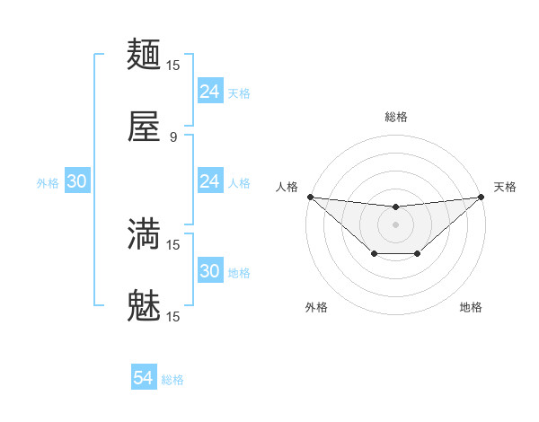 麺屋 満魅さんの天格は24画の5点!