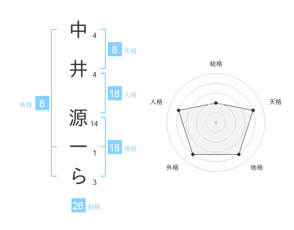 中井 源一らさんの天格は8画の4点!