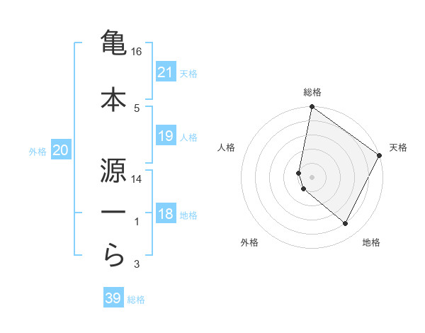 亀本 源一らさんの総格は39画の5点!