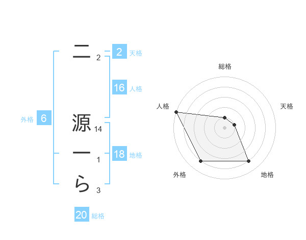 二 源一らさんの総格は20画の1点!