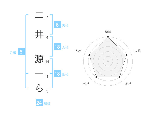 二井 源一らさんの天格は6画の4点!