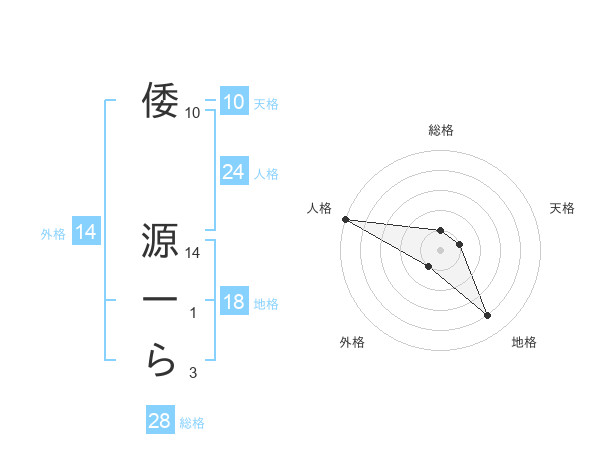 倭 源一らさんの総格は28画の1点!