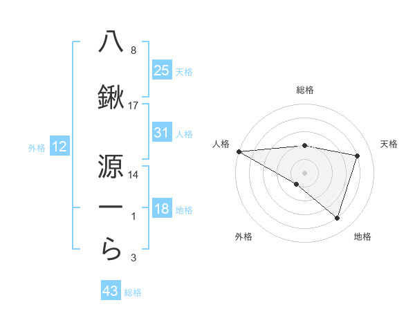 八鍬 源一らさんの地格は18画の4点!