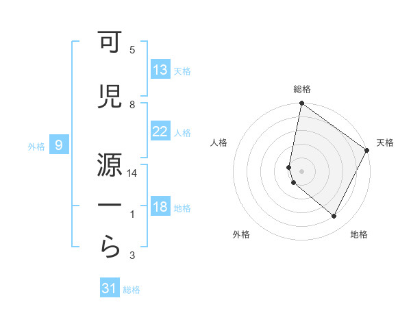 可児 源一らさんの総格は31画の5点!