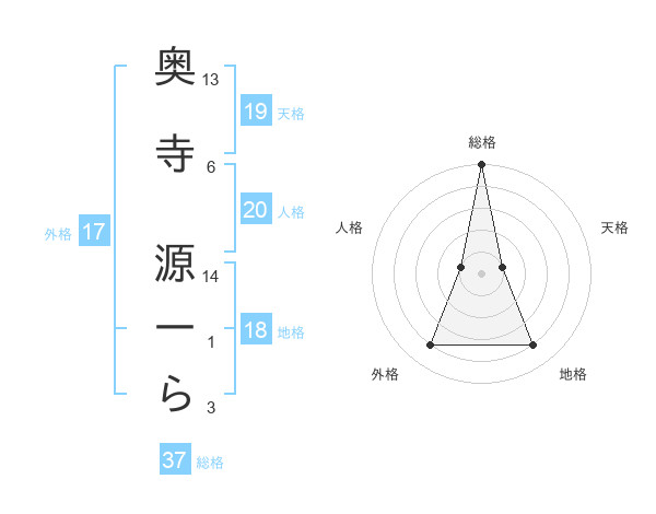 奥寺 源一らさんの総格は37画の5点!
