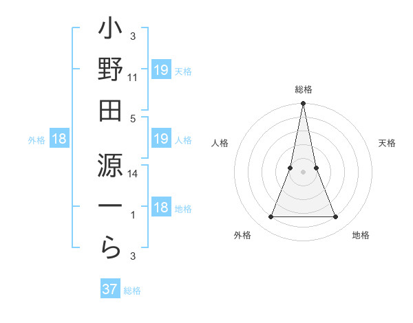 小野田 源一らさんの総格は37画の5点!