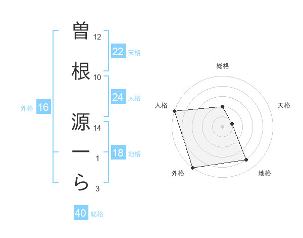 曽根 源一らさんの外格は16画の5点