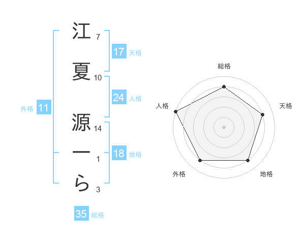 江夏 源一らさんを姓名の画数から五運を鑑定
