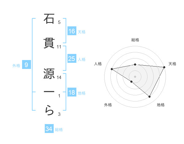 石貫 源一らさんを姓名の画数から五運を鑑定