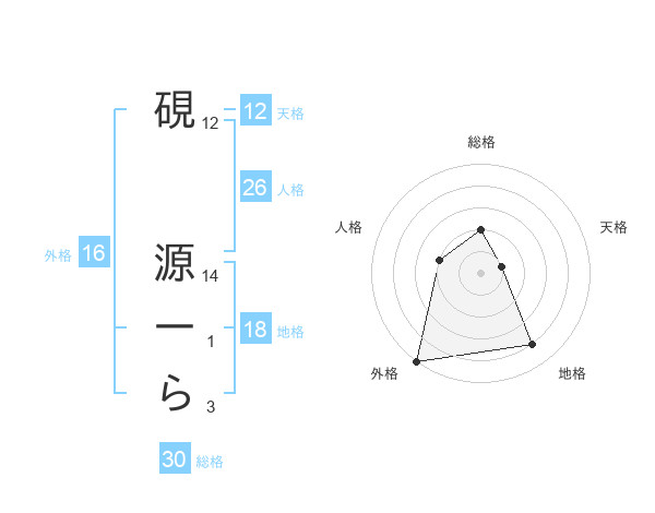 硯 源一らさんの地格は18画の4点!