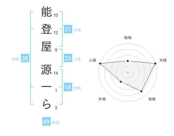 能登屋 源一らさんを姓名の画数から五運を鑑定