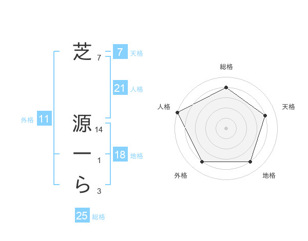 芝 源一らさんの総格は25画の4点!
