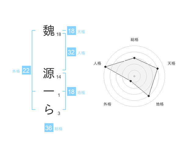 魏 源一らさんの地格は18画の4点!