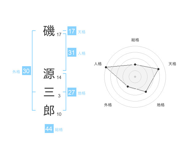 磯 源三郎さんの天格は17画の4点!