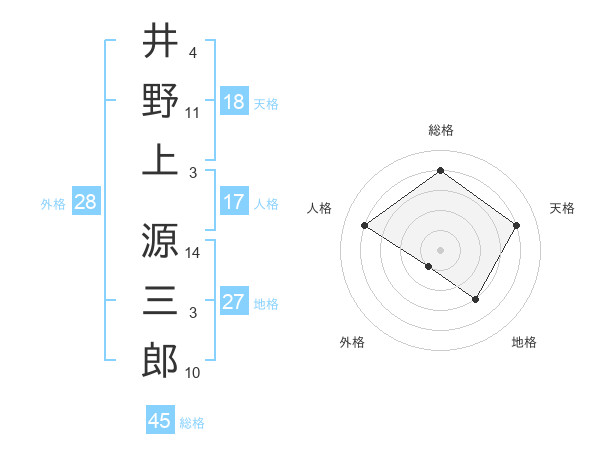 井野上 源三郎さんを姓名の画数から五運を鑑定
