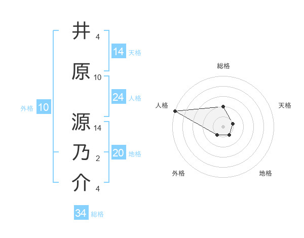 井原 源乃介さんを姓名の画数から五運を鑑定