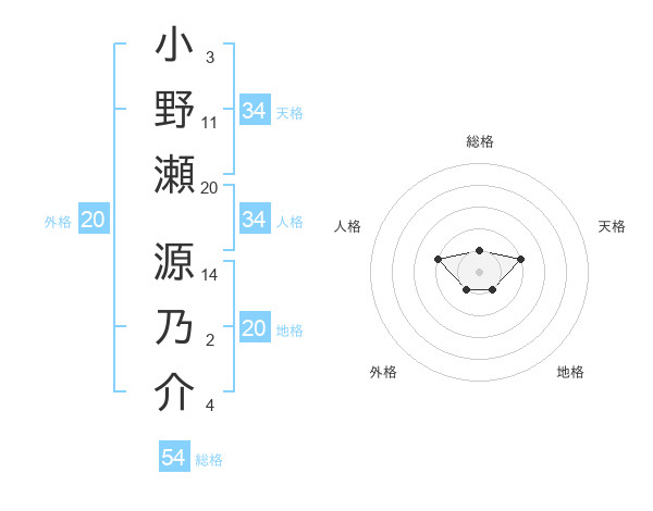 小野瀬 源乃介さんを姓名の画数から五運を鑑定