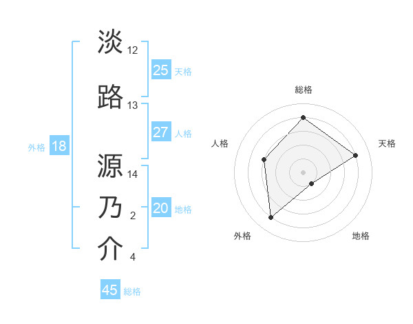 淡路 源乃介さんを姓名の画数から五運を鑑定