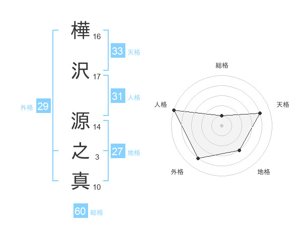 樺沢 源之真さんの総格は60画の1点!
