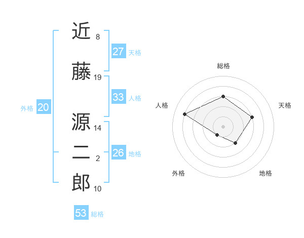 近藤 源二郎さんを姓名の画数から五運を鑑定
