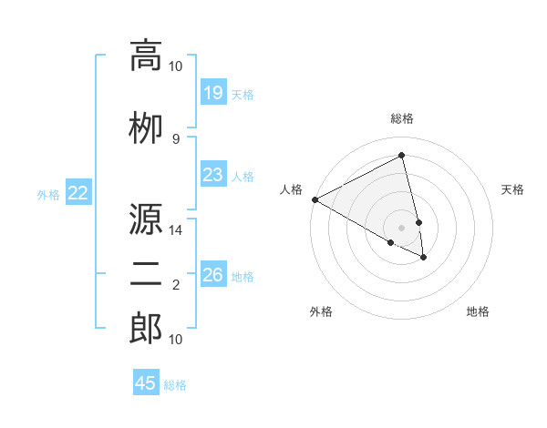高栁 源二郎さんの総格は45画の4点!
