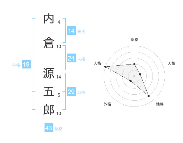 内倉 源五郎さんを姓名の画数から五運を鑑定