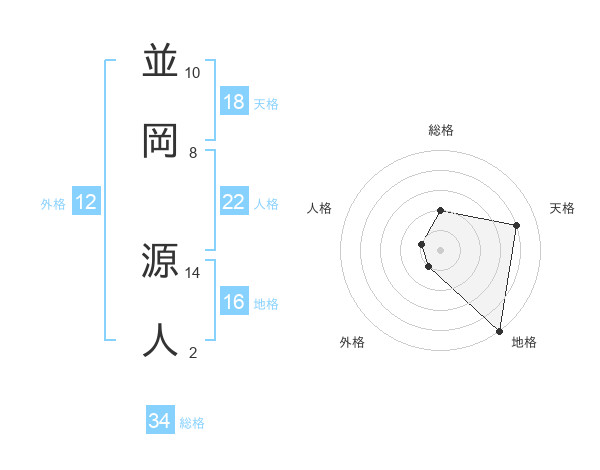 並岡 源人さんの天格は18画の4点!